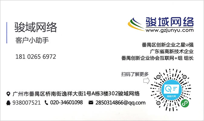 廣州駿域網(wǎng)絡科技有限公司成立于2005年,是一支由眾多具有多年實踐經(jīng)驗的專業(yè)人士組成的高新技術(shù)團隊,專為企業(yè)提供網(wǎng)站建設(shè)、全網(wǎng)營銷、郵箱等服務,我們擁有嚴謹?shù)某绦蜷_發(fā)人員、專業(yè)的美工設(shè)計、隨時為您效勞的售后服務人員,團隊人數(shù)達一百多人。目前我們已經(jīng)榮幸的為廣州眾多知名企業(yè)提供了包括網(wǎng)站建設(shè)、手機網(wǎng)站、小程序、企業(yè)軟件開發(fā)等多種基于互聯(lián)網(wǎng)技術(shù)的服務。 通過長期積累,駿域網(wǎng)絡目前已經(jīng)擁有50000多家客戶。